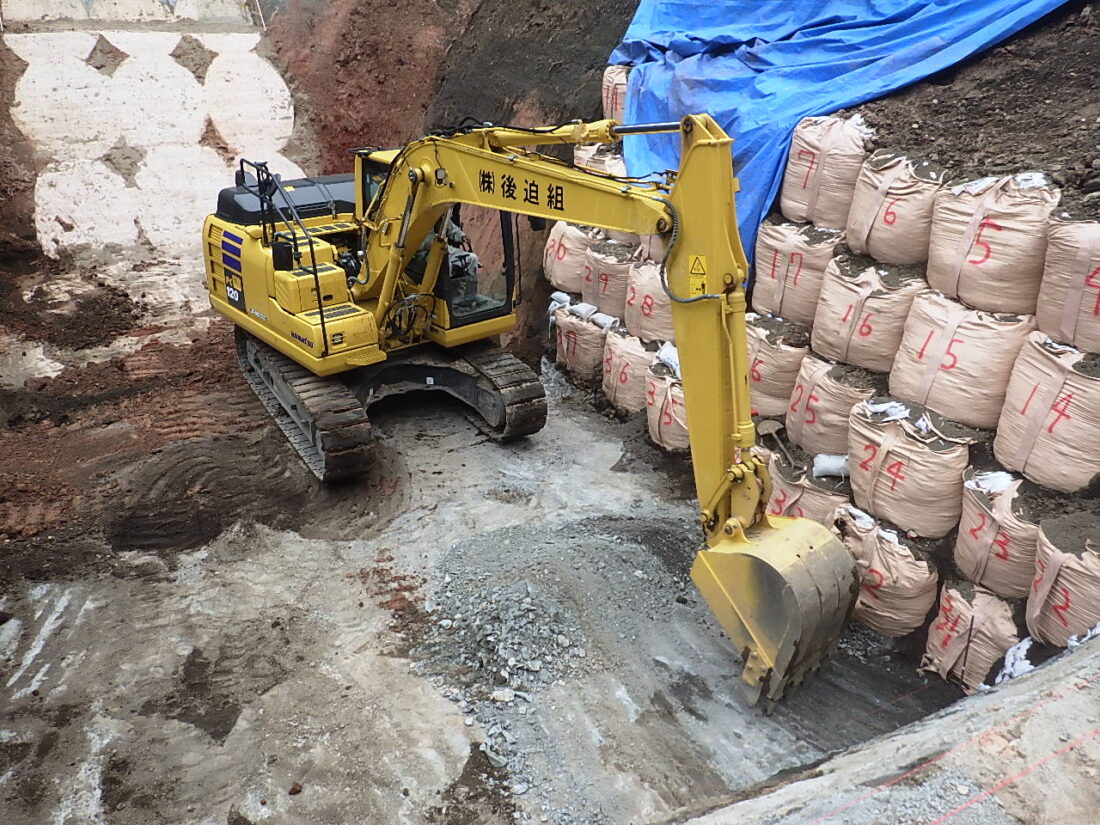 地盤改良から始まり、改良後は堰堤を設置する深さまで掘削を行いました💪