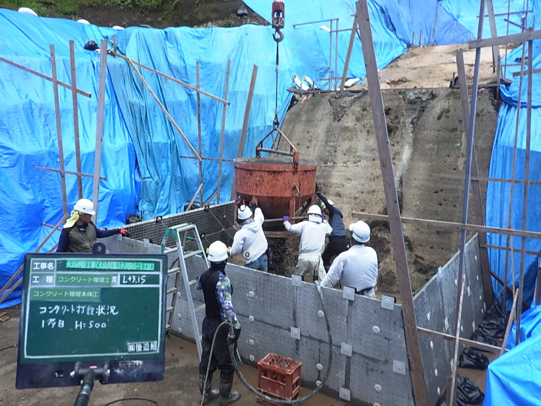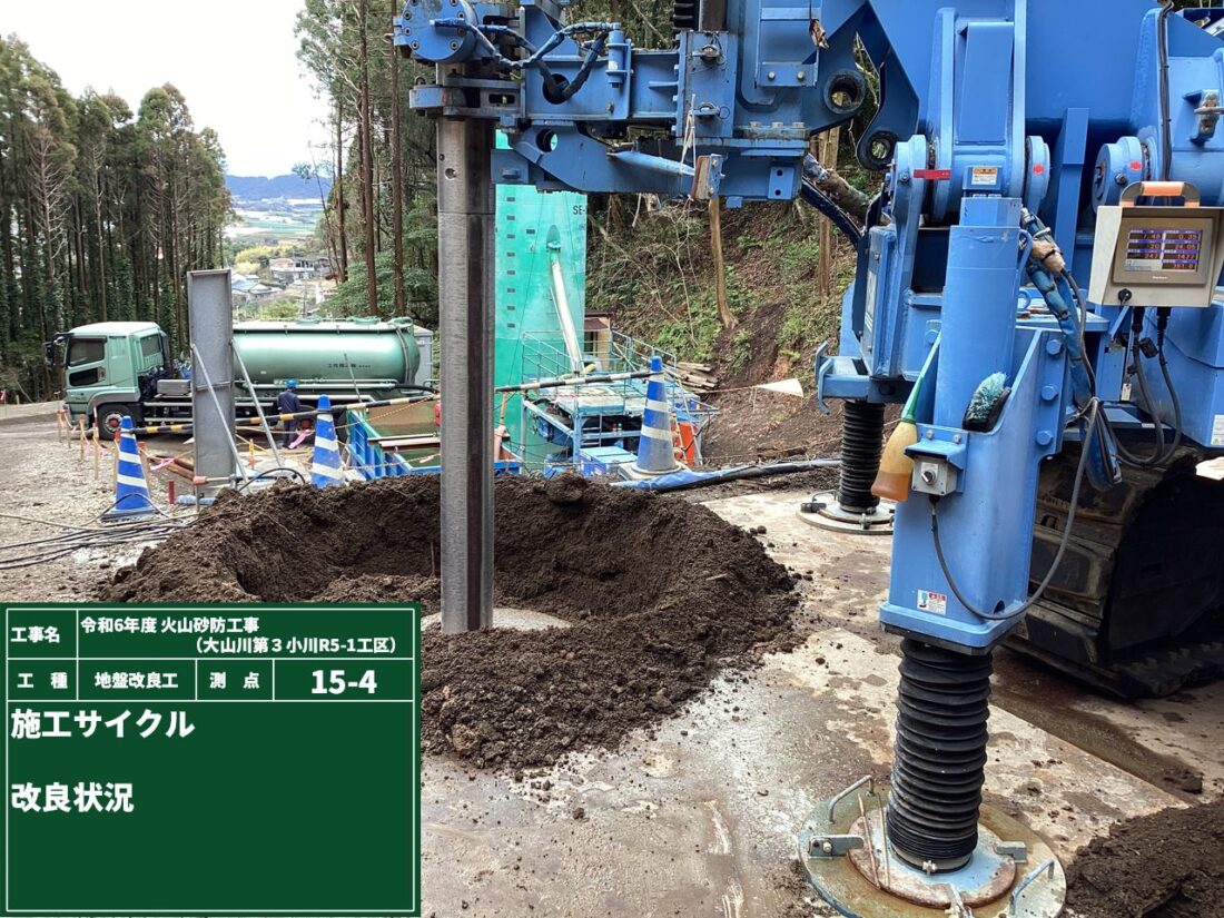 今回の工事は、最初に地盤改良で頑丈な土台を作り、その上に堰堤を作る工事でした💡